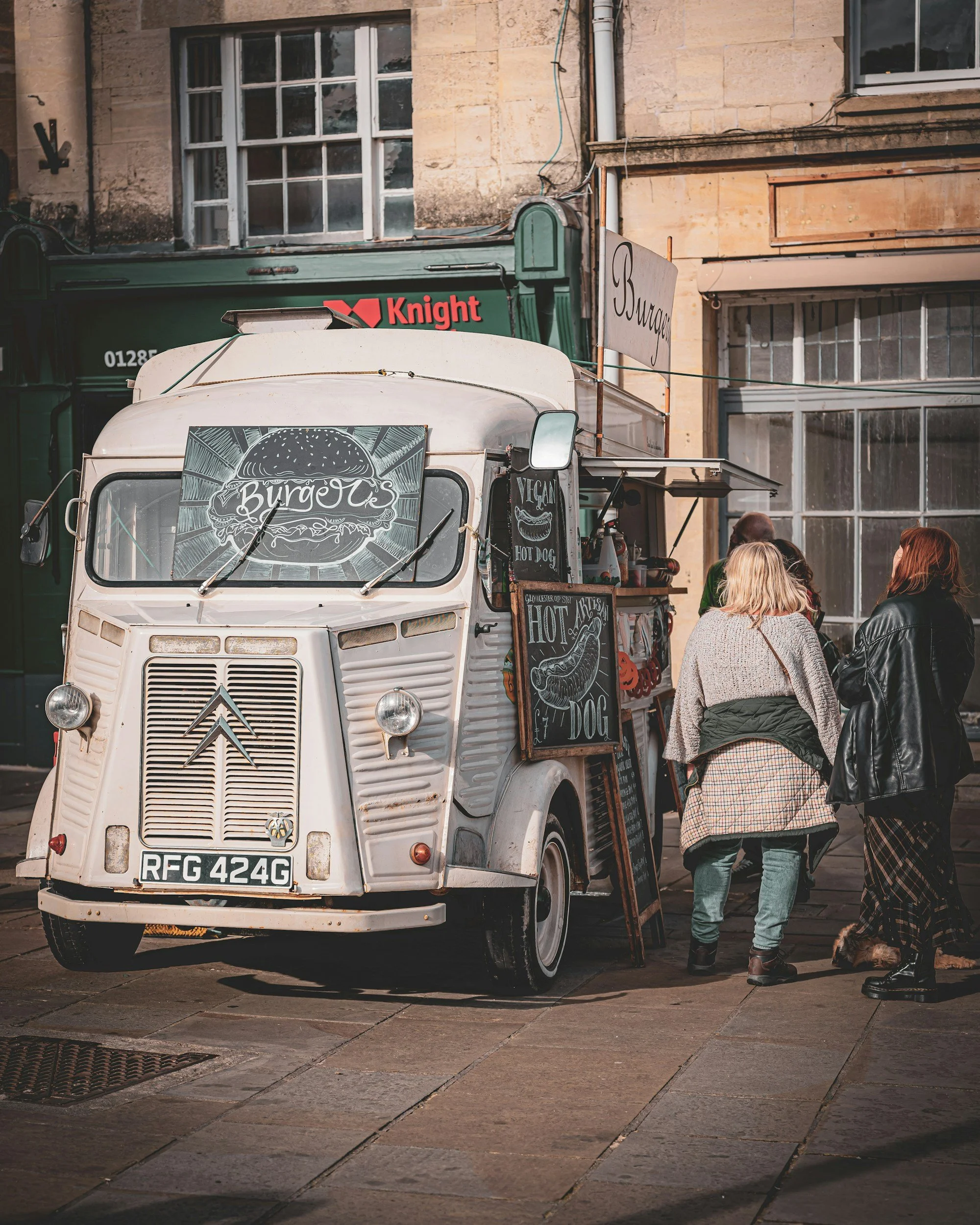 Gourmet burgers, Mexican street food, Wood-fired pizza, Greek street food, Philly steak, Chicken ranch, Fish and chips, Toasties, Hot dogs, Ice Cream, Doughnuts, Churros & Loaded fries.